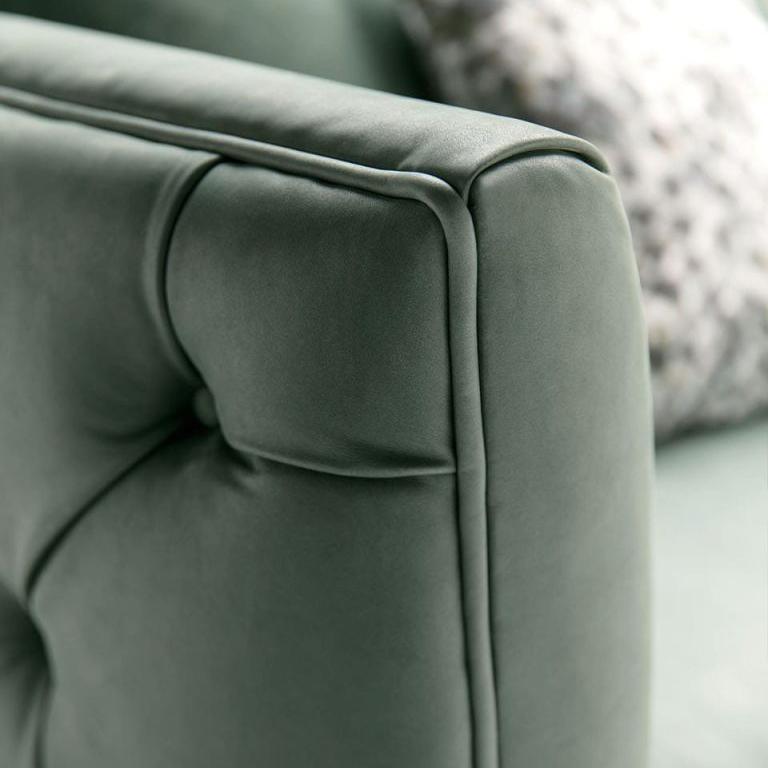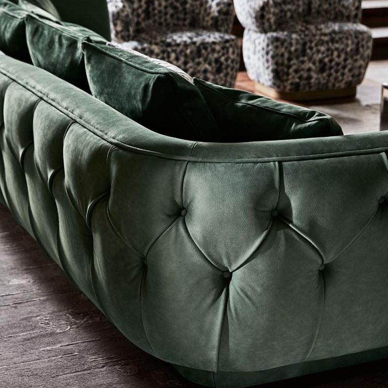 The Simon sofa with external tufting has a sophisticated and contemporary design that combines functionality and elegance.
