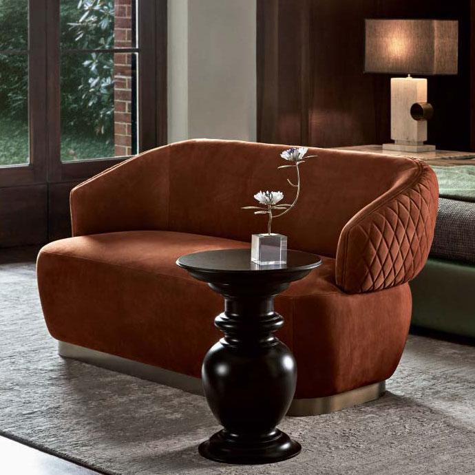 The Sophie collection contains two types of seat, each bursting with character. With its compact dimensions and fluid lines, the Sophie sofa is suitable for any living space. The elegant details that distinguish the collection are: the diamond-shaped quilting that decorates the back and the sophisticated metal accents of the base.