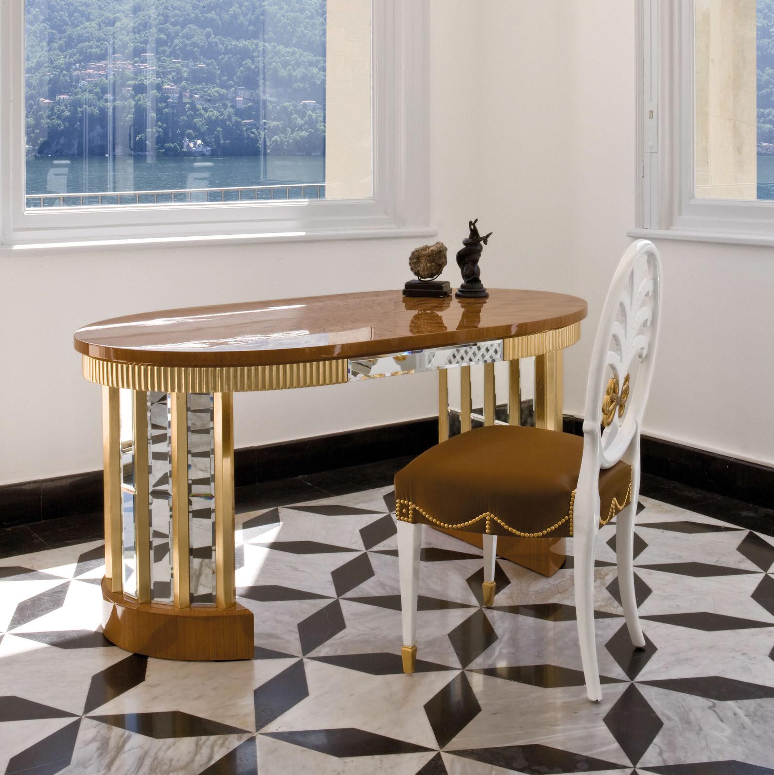 Desk oak inlaid, gold leaf details, base with bevelled mirror.