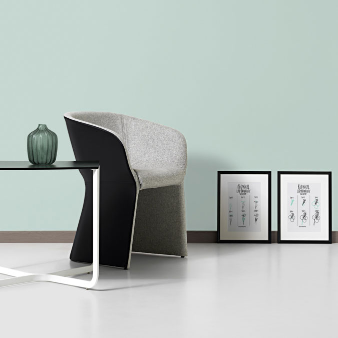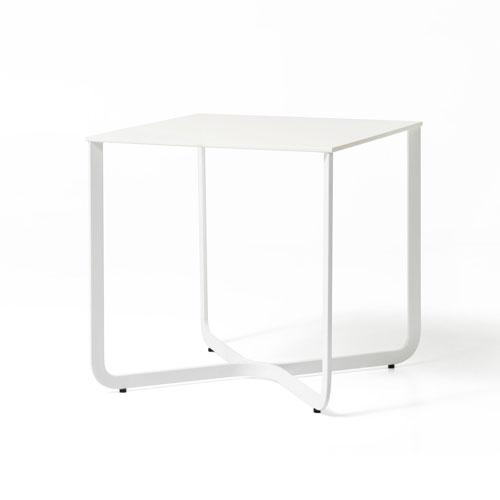 Waiting table, with structure in painted metal tube, shelf in white or black HPL available in two different heights.