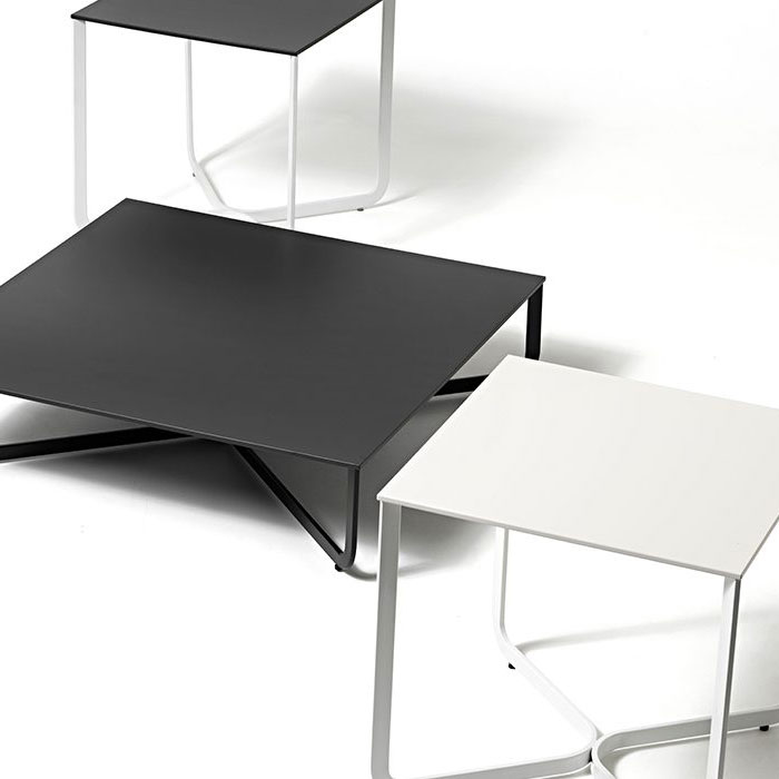 The characteristic intersection of the base determines the inspiration for the name and gives them a unique design. The tables are recognizable by their size: small in the XS version and larger in the XL version.