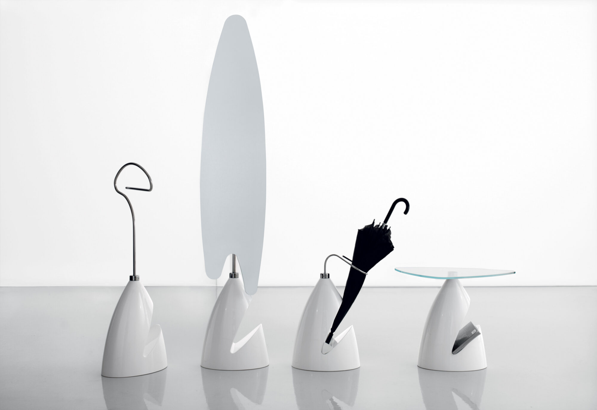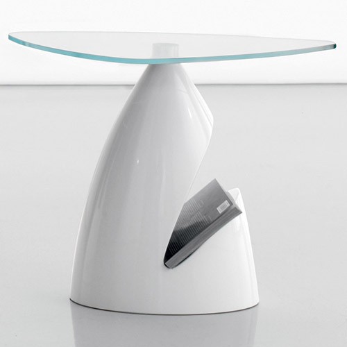 Zac Coffee Table Coffee table with white, dove grey or light cream bright lacquered polyurethane base. Top in transparent extra clear safety glass. 24.4″ x Ø16.6″ x 18.9″ h.