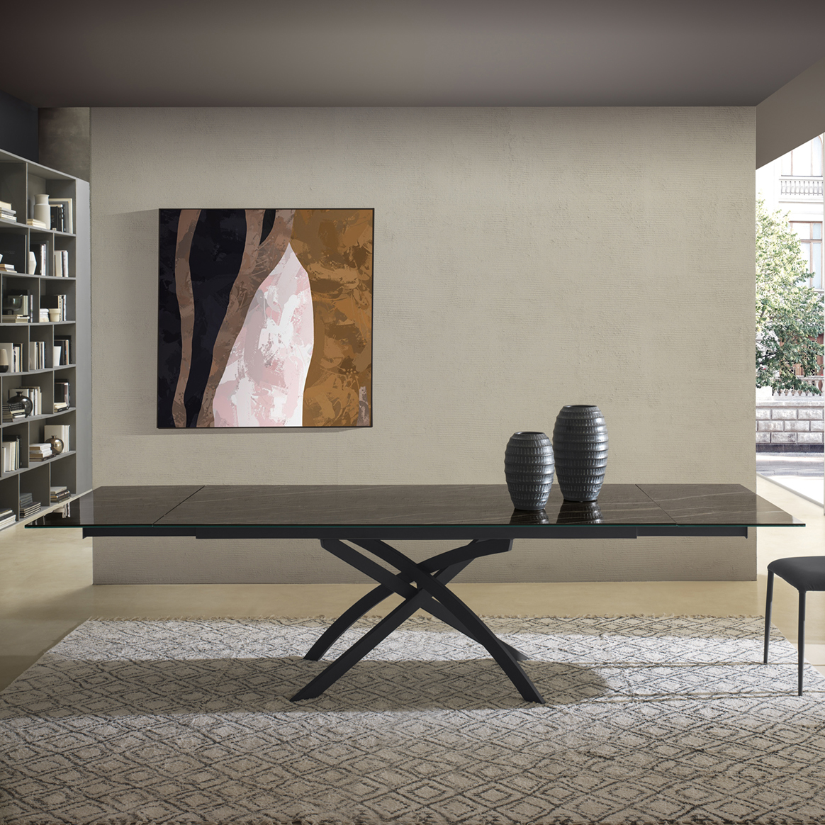 Extendable with painted metal base and flat available in different finishes.